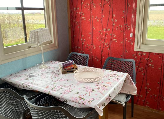 Eettafel met vier stoelen.